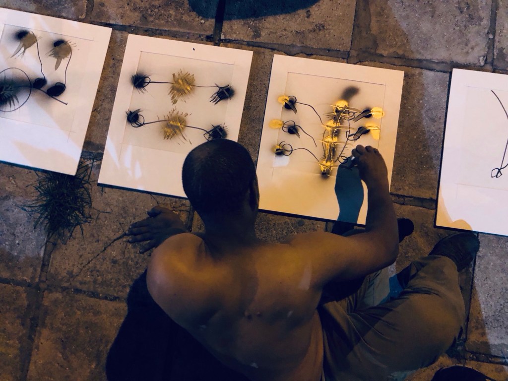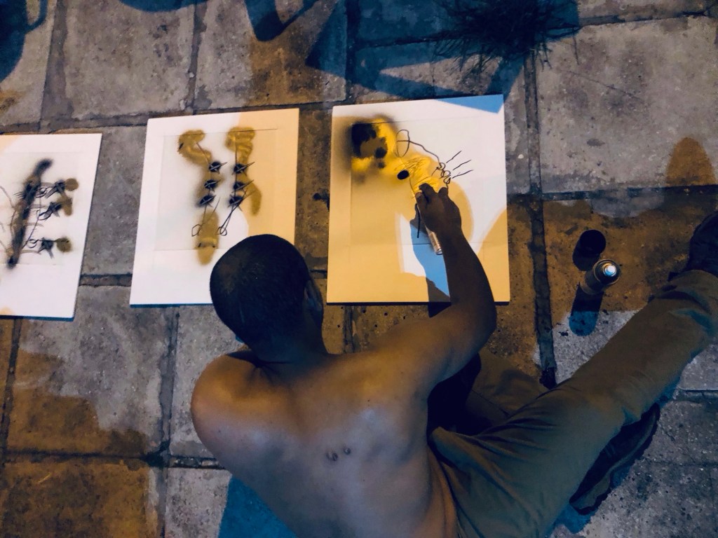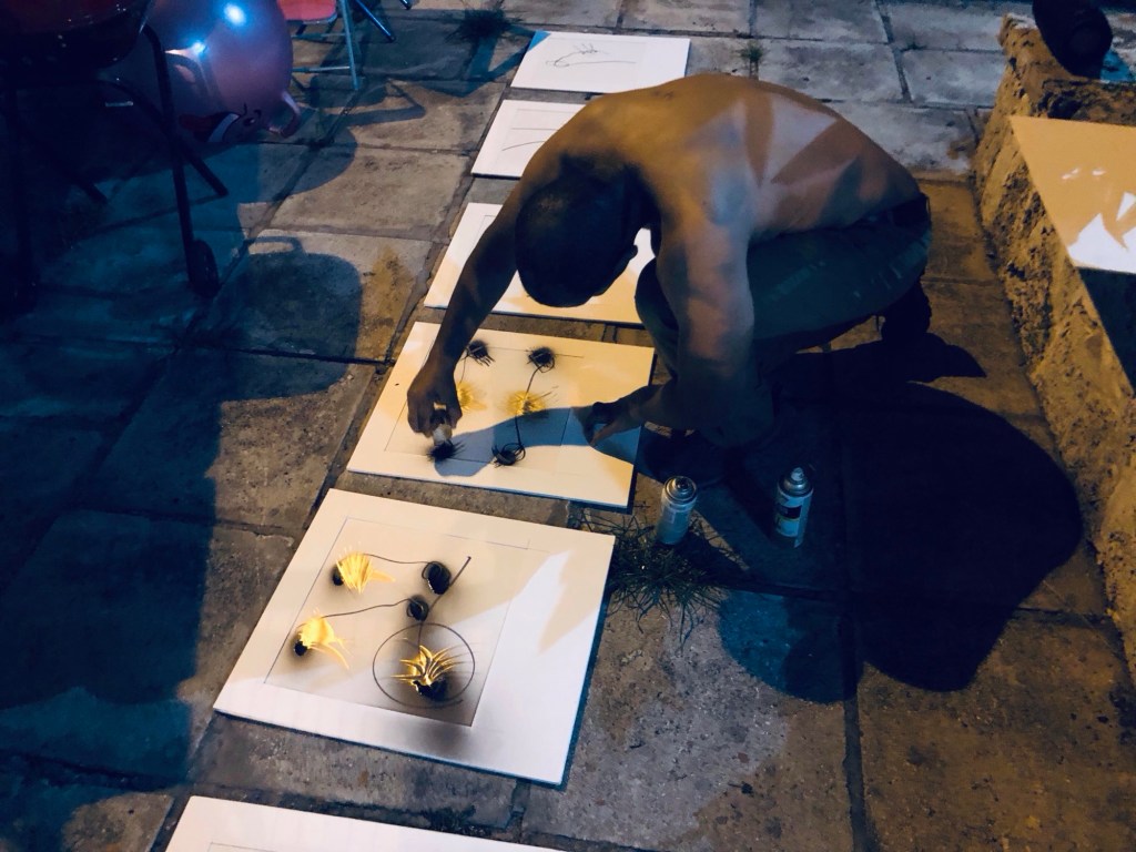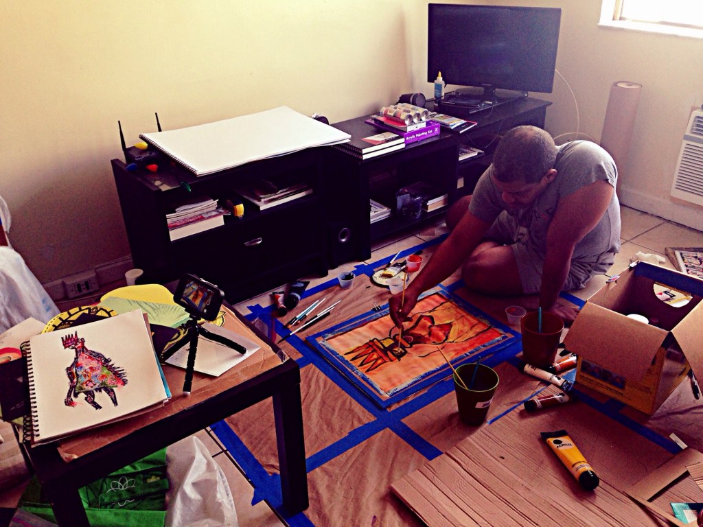 Trabajando en una obra de la serie: La Reina Rota Técnica Mixta/ Papel Cansón 2016 – 2017 Pinturas para ilustrar el libro de poemas: La Reina Rota deleita cubano Nilo Julián González Preval.