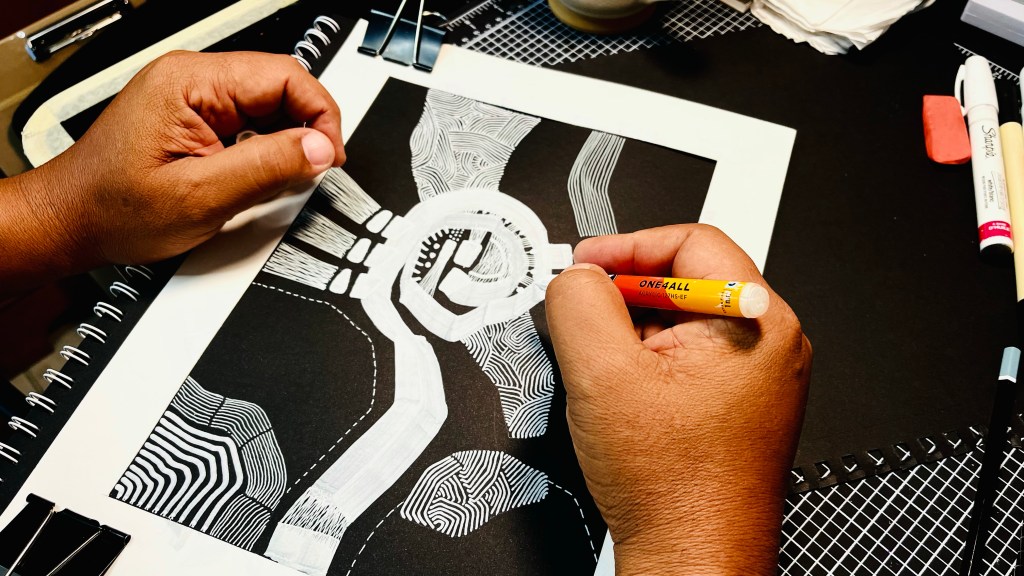 Cuando dibujas, puedes sumergirte entre las manchas y las líneas que van surgiendo sobre el plano.
