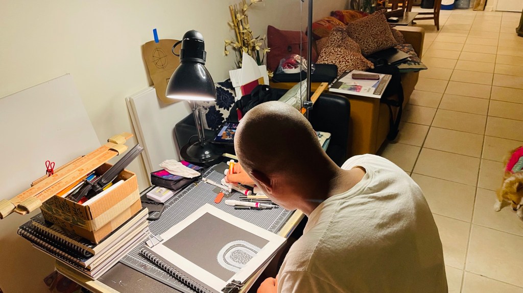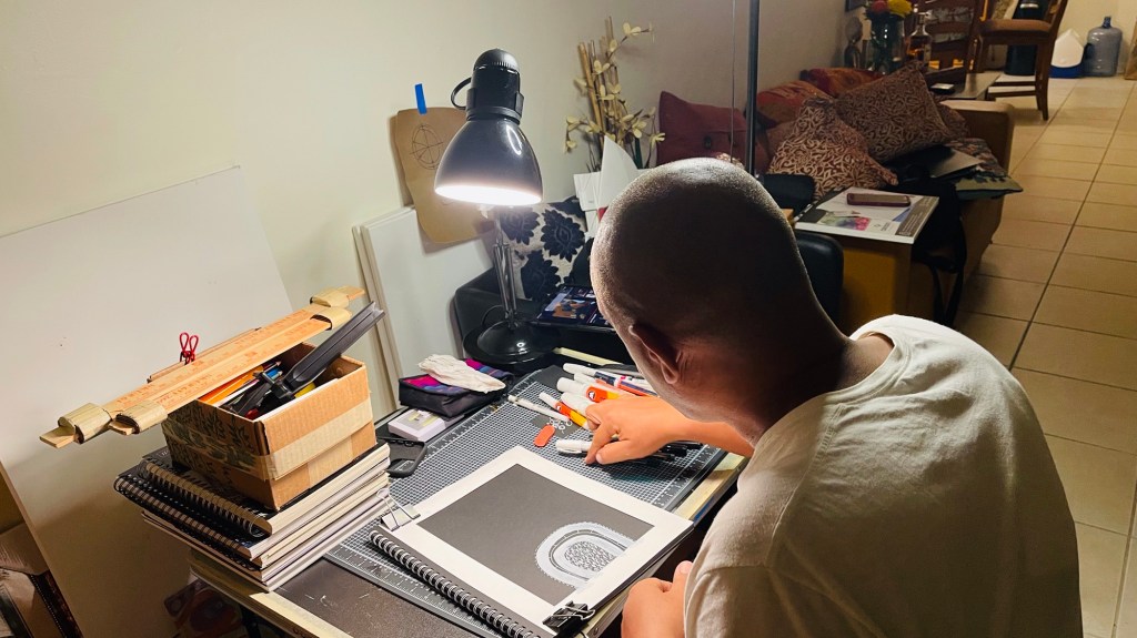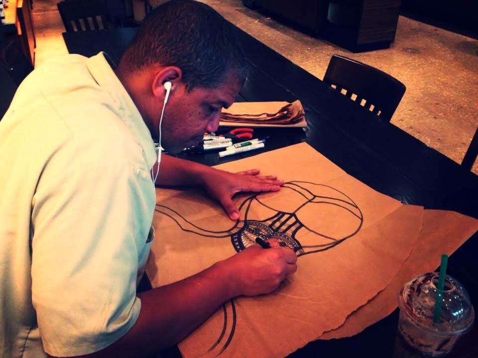 Fotos de los dibujos originales de los poemas del libro Corazones de Piedra. Starbuck, 2016. Fotos de Alina Guzmán Tamayo.