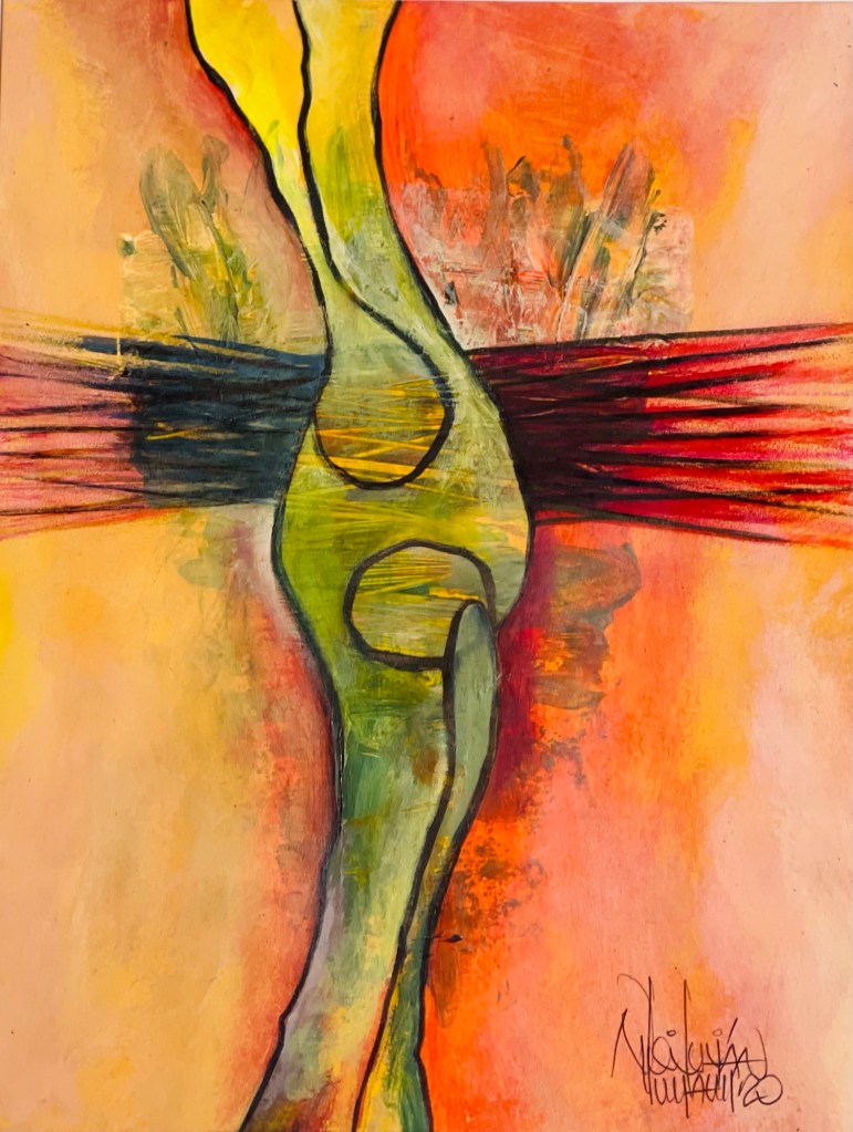 Obras de la serie: Tres piedras. Pinturas abstractas del poeta cubano Nilo Julián González Preval. 2017 Técnica mixta/Papel.