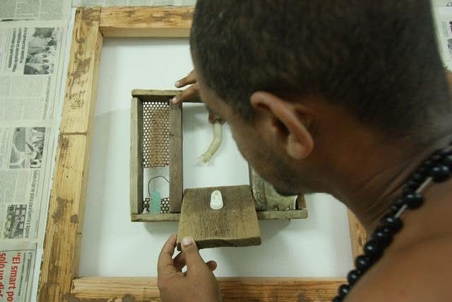 Llamado “objeto energético” no remite a una noción esotérica superficial, sino a una comprensión antropológica y relacional de la materia. En las tradiciones afrocubanas, el objeto ritual es portador de intención, memoria y fuerza espiritual. Esa lógica atraviesa el imaginario cultural cubano incluso cuando el artista trabaja desde un discurso laico o contemporáneo. La materia guarda gesto, uso, roce, desgaste. Cada objeto ha sido habitado. Y esa habitabilidad deja rastro.