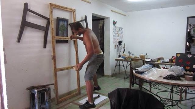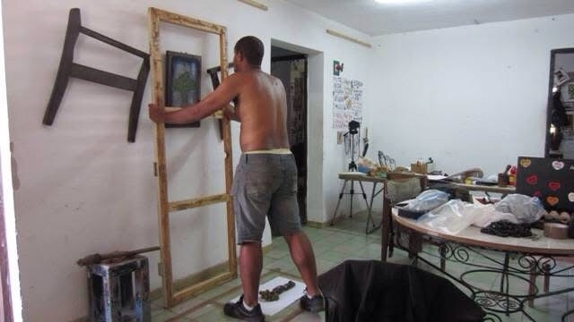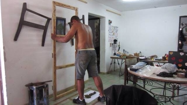 «Baliza» Una escultura efímera de la serie Navegantes. En las fotos Edilberto Cuello amigo del artista termina la obra en La Casa Templo del Arte Cubano, 2012.
