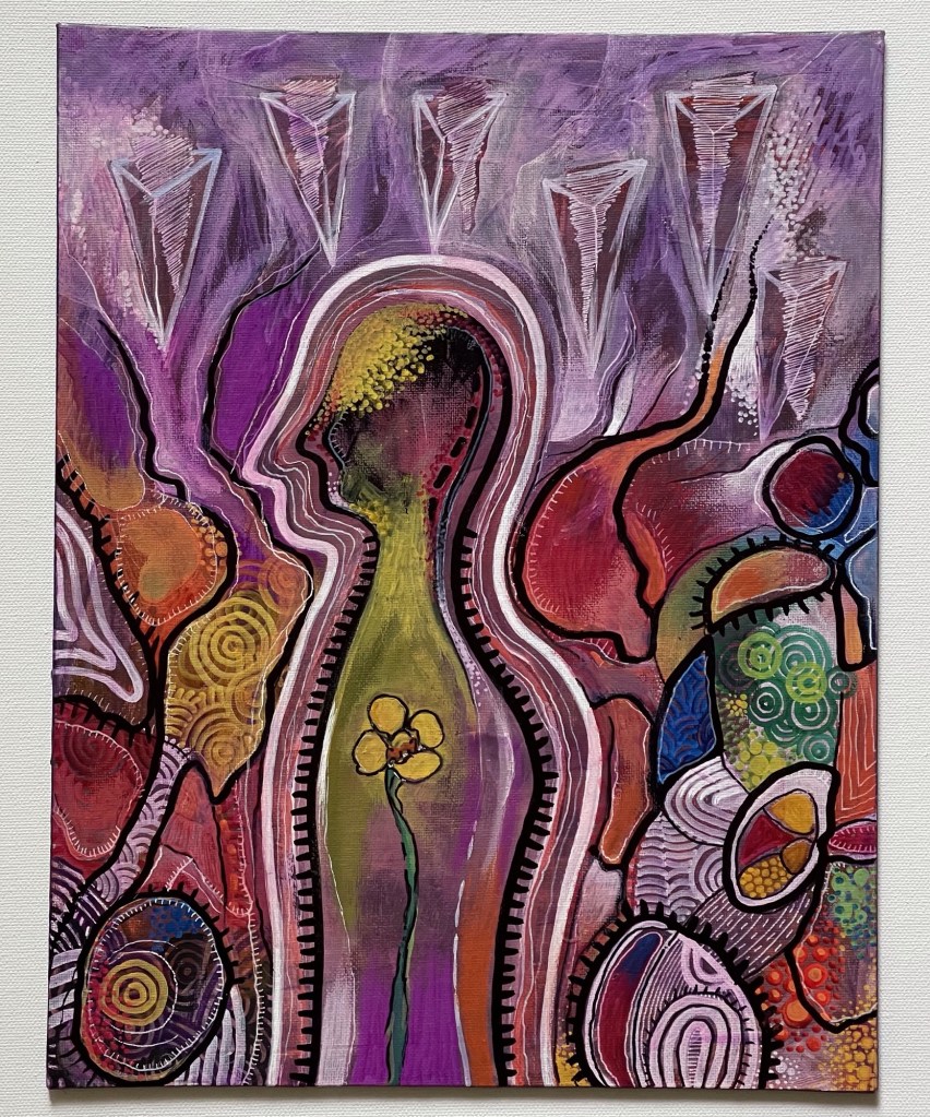 «Dos cuerpos» Una pintura en pequeño formato de la serie: Santa Bárbara Bendita. Técnica Mixta/ Tablero de lienzo imprimado, 2016. Una pintura del poeta Nilo Julián González Preval.