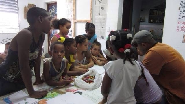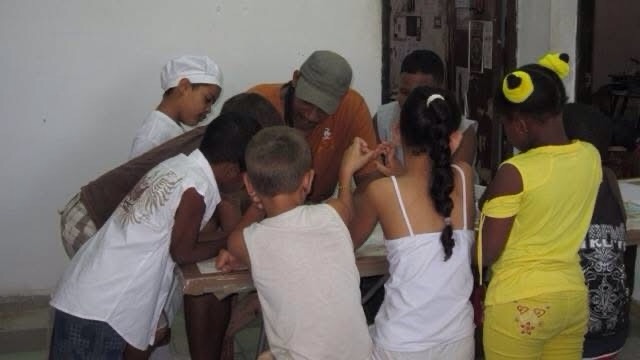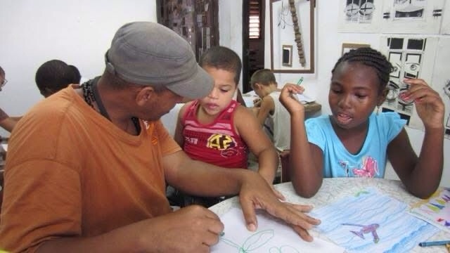 Nilo Julián «The Homo Nganga» González Preval impartiendo un Taller de Artes Plasticas a los niños de su comunidad, 2012.