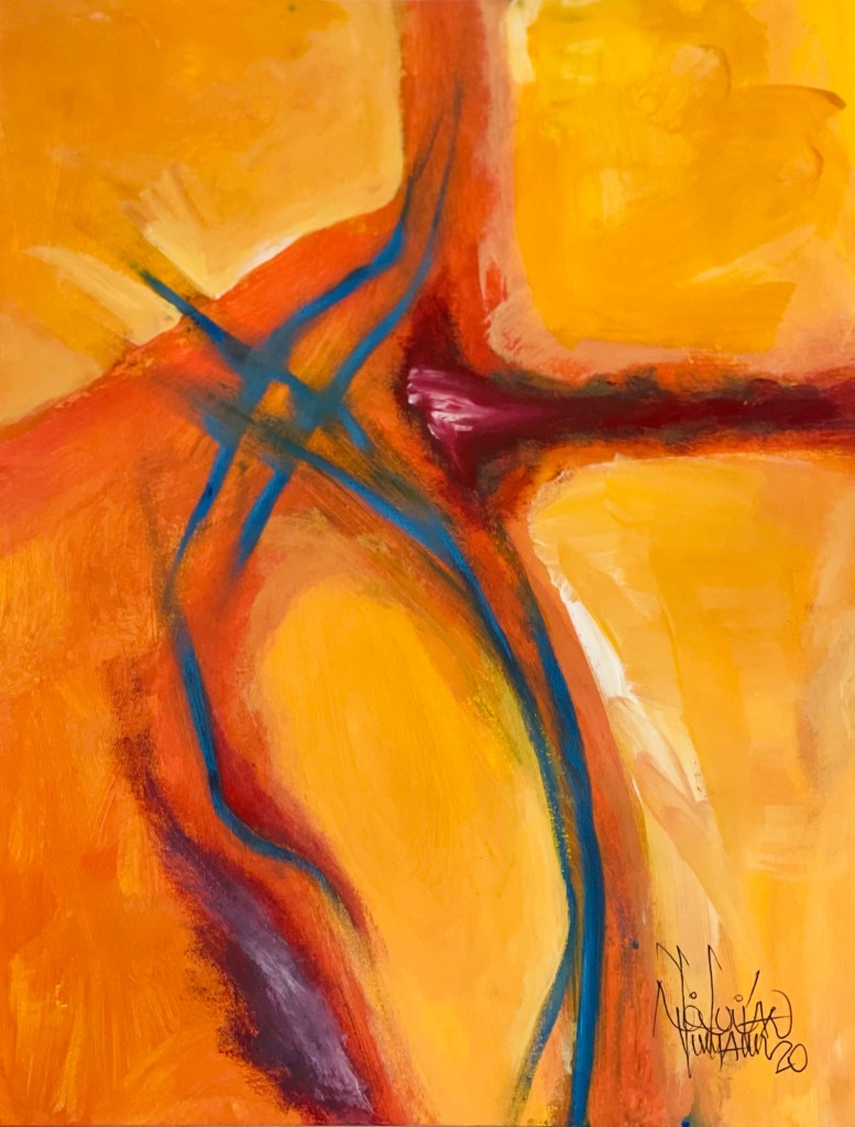 Pinturas abstractas en pequeño formato de la serie: «Tres Piedras» 2019 . Obras del poeta cubano Nilo Julián González Preval.
